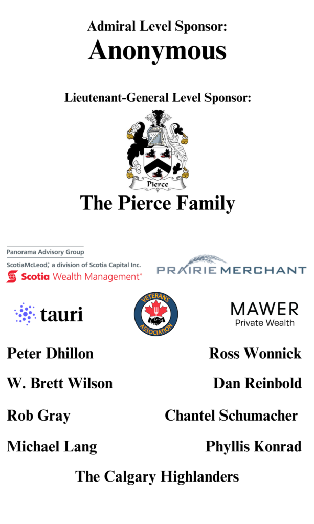 - Our appreciation goes to the generous donations and support from our guests, donors, supporters and corporate sponsors – the Pierce Family, Prairie Merchant, Scotia Wealth Management – Panorama Advisory Group, Tauri, Mawer Private Wealth, Veterans Association Food Bank, and Stonebridge Equity Partners. Your generosity—through attendance, donations, and enthusiastic bidding in our silent and live auctions – means the world to us.