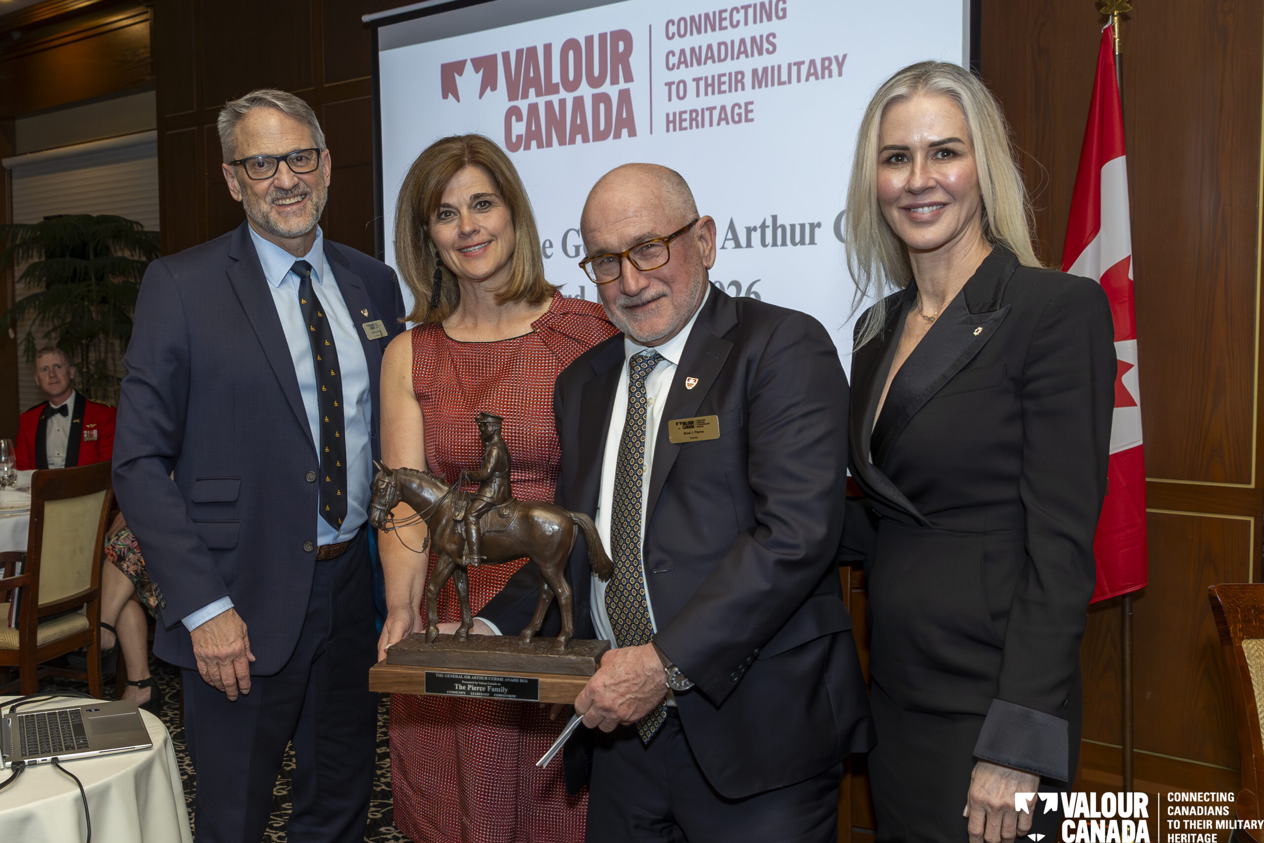 On April 9, 2026, nearly 200 guests attended the 2026 General Sir Arthur Currie Award Dinner at the Calgary Golf and Country Club to honour the Pierce Family – an enduring part of the fabric of Calgary and strong advocates and supporters of its rich military heritage for over 50 years.