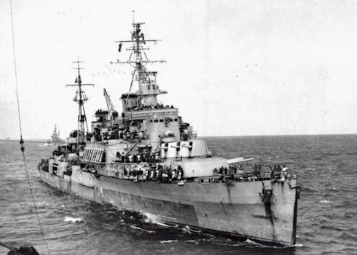 - Light cruiser HMS Uganda (13 Sep 1943, major damage, 13 months to repair). After repairs she was commissioned into the RCN as HMCS Uganda and later as HMCS Quebec, and